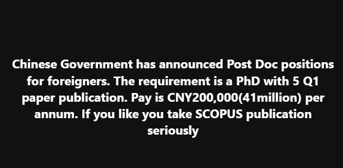 Chinese Government Post-Doc positions — CNY 200,000 per year